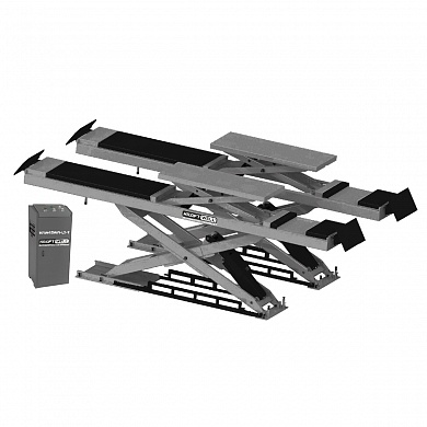 - Ножничный подъемник с платформами для сход-развала и встроенным в платформы ножничным подъемником второго уровня KRW45WA-LT грузоподъемностью 4500 кг применяется для проведения процедуры регулировки установки углов колес (сход-развал) легковых автомобилей, кроссоверов и легкого коммерческого транспорта. Платформы длиной 4500 мм оснащены вырезами под поворотные круги в передней части и задними подвижными пластинами. Поворотные круги НЕ включены в комплектацию. Установка подъемника в приямок глубиной 330 мм позволяет обеспечить ровный пол и беспрепятственное перемещение автомобилей по цеху. Максимальная высота подъема от пола составляет 1850 мм. Для вывешивания колес автомобиля, используется встроенный в платформы ножничный подъемник второго уровня с диапазоном регулировки длины платформ от 1400 до 1610 мм и высотой подъема 450 мм;