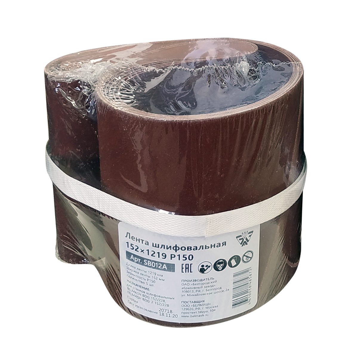 Шлифовальная лента длиной 1219 мм, шириной 152 мм, зернистостью P150 применяется на ленточно-дисковых шлифовальных станках BELMASH BDG152/228 и BDG-2 152/228.