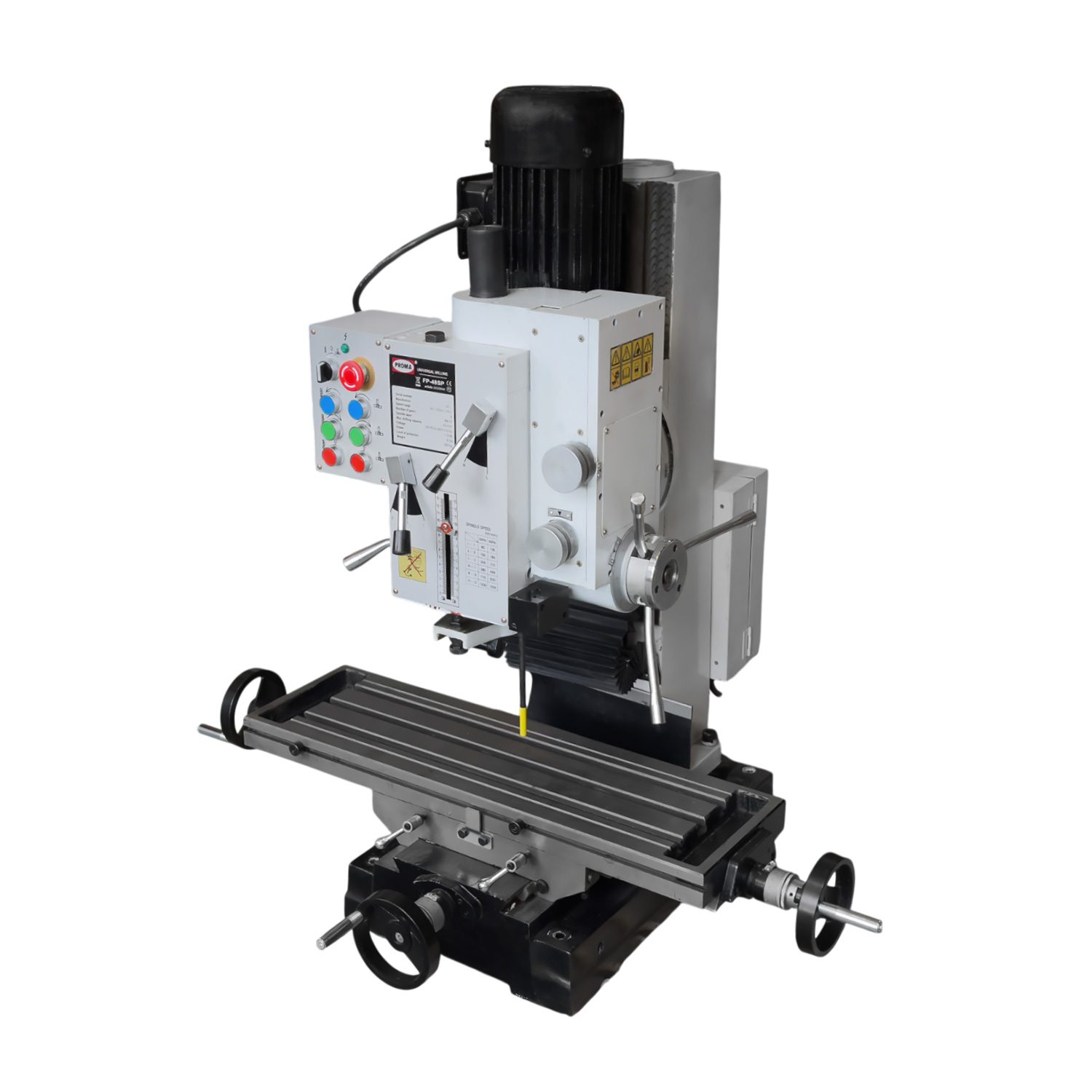Вертикальный фрезерный станок FP-48SP— это многофункциональное устройство, которое можно использовать для работы с различными материалами. Он хорошо подойдёт для мелкосерийного производства, штучного производства, ремонта, обучения, а также прекрасно справится с обработкой деталей и корпусов разных форм и размеров.Особенность станка FP-48SP— это автоматическая вертикальная подача шпинделя и возможность регулировать глубину сверления. Простота конструкции и небольшие габариты. Мощный двигатель и коробка скоростей редукторного типа позволяют выдерживать значительные нагрузки на шпиндель при работе. Устройство предназначено для выполнения различных операций, включая сверление, фрезерование и работу с осевыми режущими инструментами.