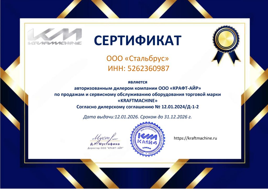 Сертификат дилера KRAFTMACHINE