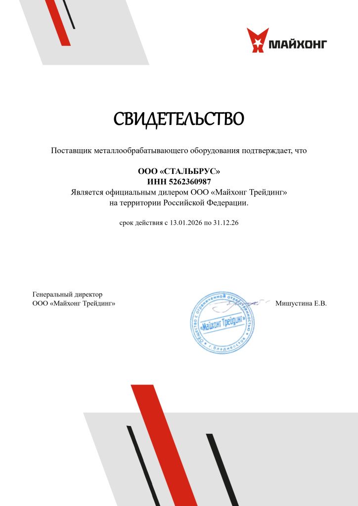 Сертификат дилера MetMachine