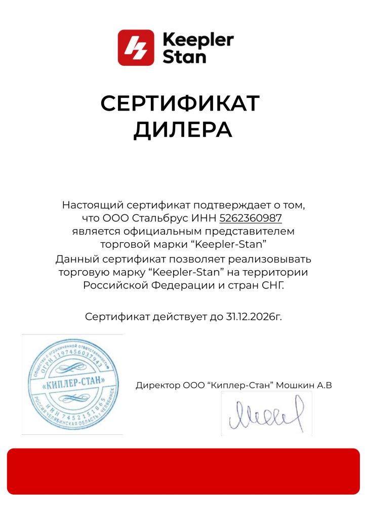 Сертификат дилера Keepler-Stan