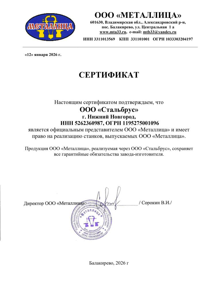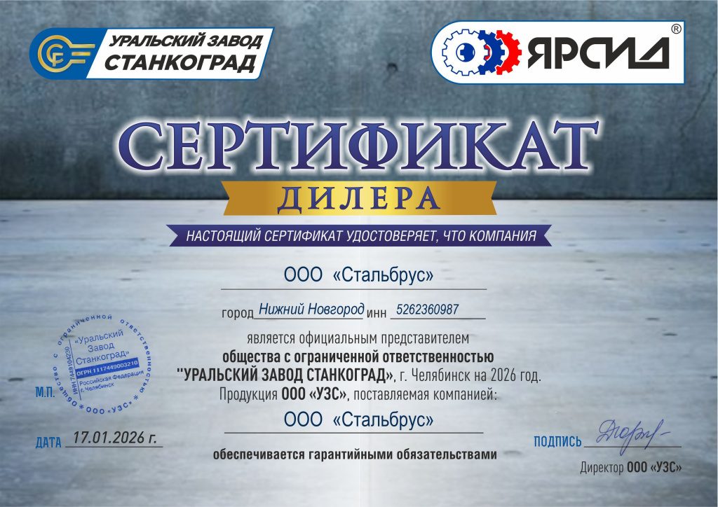 Сертификат дилера Станкоград