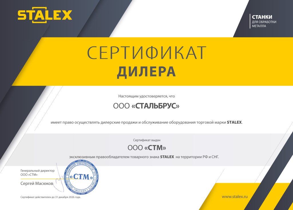 Сертификат дилера Stalex
