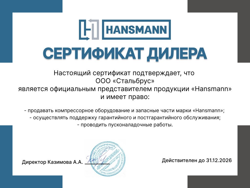Сертификат дилера HANSMAN