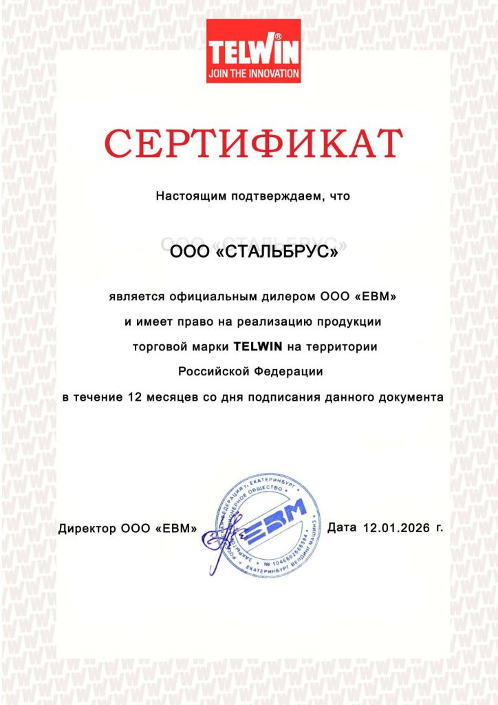 Сертификат дилера Telwin